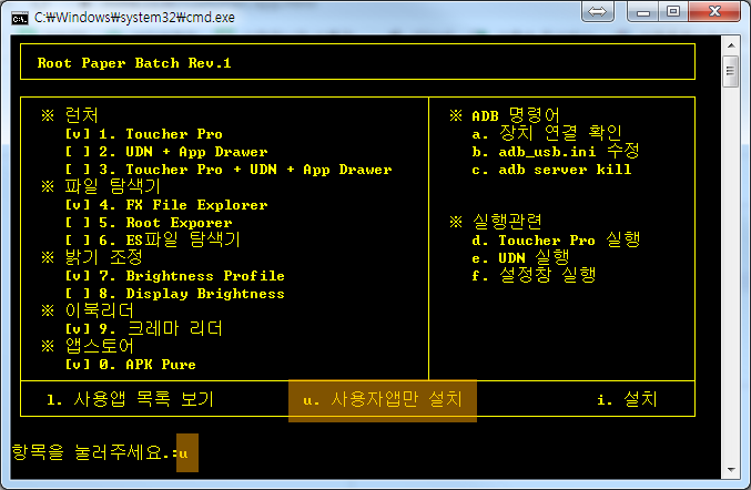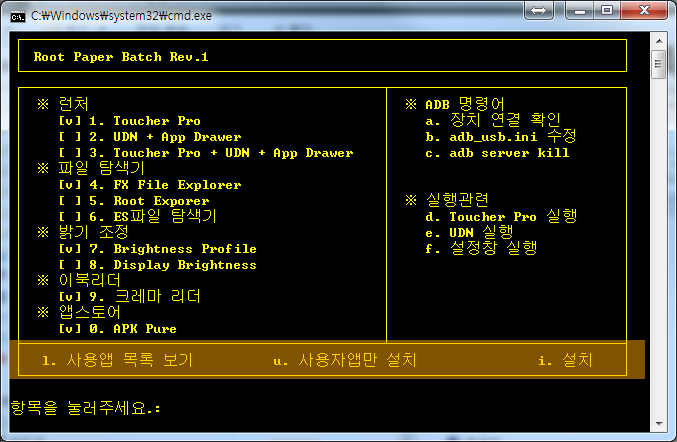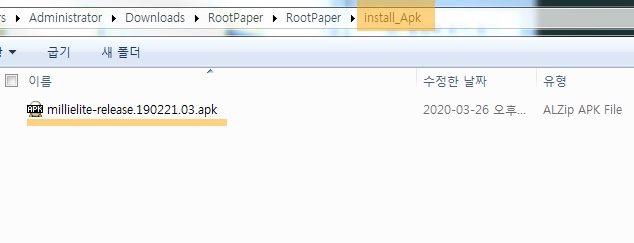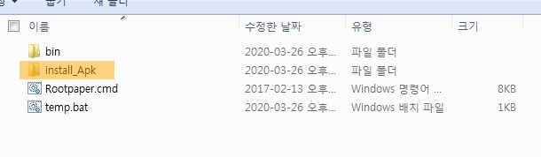 폴더안에 내가 사용하고자 하는 apk앱을 다운받아 복사 붙여넣기 하고 Rootpaper.cmd 프로그램을 활성화 시키자